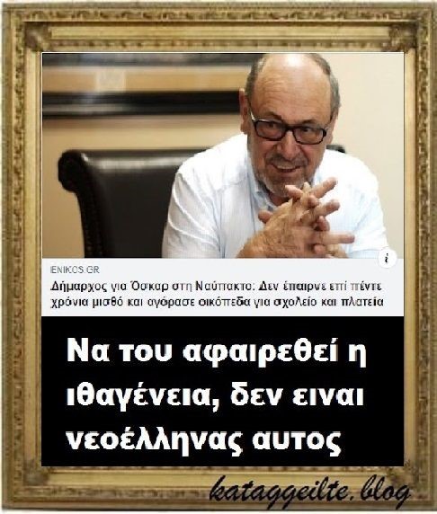 Αντιγράφω με και πάλι!! Δεν έχω κάτι καινούργιο να γράψω. Η ιστορία επαναλαμβάνεται τόσο μονότονα και καθημερινά. Μίζες, νεποτισμός, επιορκία, απιστία, αβελτηρία, ωχαδερφισμός, οκνηρία, υπεξαίρεση, ρεμούλα και ραγιαδισμός στα εθνικά θέματα. Με εξαίρεση κάτι περίεργους τύπους σαν τον τέως δήμαρχο Ναυπάκτου ονόματι Παναγιώτης Λουκόπουλος!