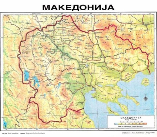 Ενδεικτικά σημειώνεται ότι Χάρτης που εκτύπωσαν τα Σκόπια το 1992 δείχνει καθαρά την διεκδίκηση, ότι η Μακεδονία εκτείνεται από εκεί, μέχρι το όρος Όλυμπος, προς νότον, συγχωνεύοντας έτσι τις περιοχές της αρχαίας Παιονίας και Μακεδονίας σε μία ενότητα.
