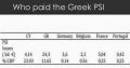 Το δε PSI - κούρεμα του χρεόυς - που διαφημίζει ο Βενιζέλος, πληρώθηκε κυρίως από εμάς (24,3 δις), δηλαδή από τις ελληνικές τράπεζες, που στη συνέχεια τα πήραν πίσω, και από τα ασφαλιστικά ταμεία, που καταστράφηκαν. Οι Ευρωπαίοι φίλοι μας πλήρωσαν ελάχιστα (Γερμανία 3,6 δις, Γαλλία 5,04 δις, Κύπρος 4,14 δις κτλ.)