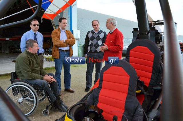 Θέλω να πω, κατ' αρχάς, ότι ο Βαγγέλης Κυράδης είναι αξιέπαινος που δεν το έβαλε κάτω, μετά το σοβαρό ατύχημα που είχε, με αποτέλεσμα να χάσει τον έλεγχο των κάτω άκρων του. Θέλω όμως επίσης να πω ότι δεν είναι ο πρώτος Έλληνας που έχει κινητικά προβλήματα και πήρε άδεια πιλότου υπερελαφρών αεροσκαφών. Γνωρίζω τουλάχιστον άλλον έναν, τον Απόστολο Μαυροθαλασσίτη, ο οποίος, ενώ κινείται στην ξηρά με αναπηρικό καροτσάκι, μετά από ένα ατύχημα που είχε πετώντας σε διεθνή αγώνα με αλεξίπτωτο πλαγιάς, πιλοτάρει υπερελαφρύ αεροσκάφος από το 2010 : http://www.ribandsea.com/face/1428-apostolis-mavrothalassitis-enas-pilotos-me-perissevma-kardias