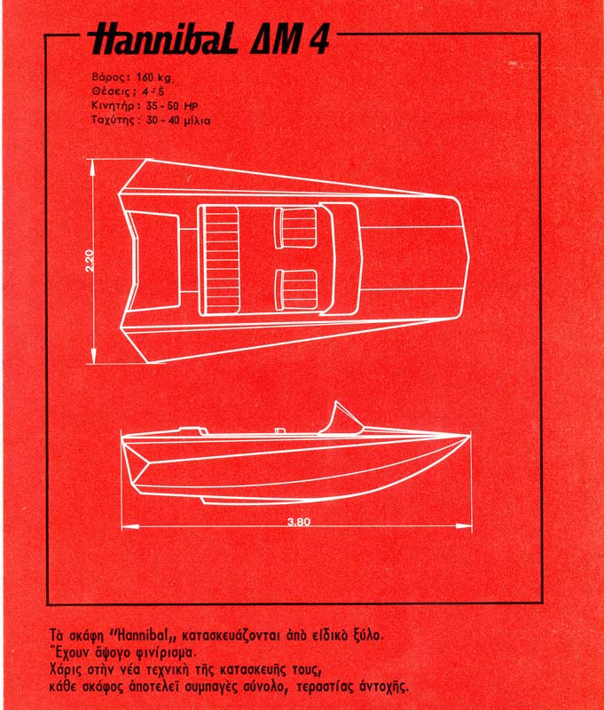 Α.Α. : Το τετράμετρο "Hannibal", που οδήγησε ο Κολιγιάννης στον πρώτο αγώνα, πενηντάριζε με τον 85άρη εξωλέμβιο! Ο Τάπας ο βενζινάς έπαιρνε όλους τους αγώνες με ένα "Hannibal" 3.85 που είχε κινητήρα "Stingher" 75 h.p. Πενήντα μίλια έπιανε μ' εκείνο το σκαφάκι!