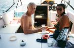 Απ. : Δεν θα το έλεγα. Σύμφωνα με το ημερολόγιο που κρατάω έχω καλύψει συνολικώς γύρω στα 28.000 μίλια! Με ένα Hannibal 4,55 όργωσα ένα καλοκαίρι ολόκληρο το Ιόνιο, ξεκινώντας από το Σούνιο και περνώντας από την διώρυγα της Κορίνθου. Με το δε επτάμετρο, το οποίο ονόμαζα "Αητό", γύριζα όλες τις Κυκλάδες. Στη φωτογραφία αυτή που βλέπεις, γευματίσαμε στη Σίφνο πάνω στον "Αητό" 25 άτομα! Μιλάμε για ένα επτάμετρο σκάφος με φάρδος 3,6 μ.! Ένα προς δύο δηλαδή, στο επάνω βέβαια τμήμα του.