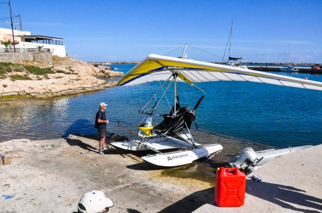Ο καιρός προσφερόταν για πτήσεις, μολονότι ήταν η πρώτη φορά που θα πέταγα με πλωτήρες και δεν μπορούσα να μαντεύσω τη συμπεριφορά τους στο νερό. Ο Col δεν κρατιόταν, το έβλεπα. Έκανα πρώτα μια δοκιμαστική solo πτήση και στη συνέχεια του έκανα ένα νεύμα να επιβιβαστεί. "Τροχοδρομήσαμε", βγαίνοντας έξω απ' τη μαρίνα, με τον Mike να ακολουθεί με το φουσκωτό σε απόσταση ασφαλείας. Οι δύο κάμερες, εν τω μεταξύ, κατέγραφαν...